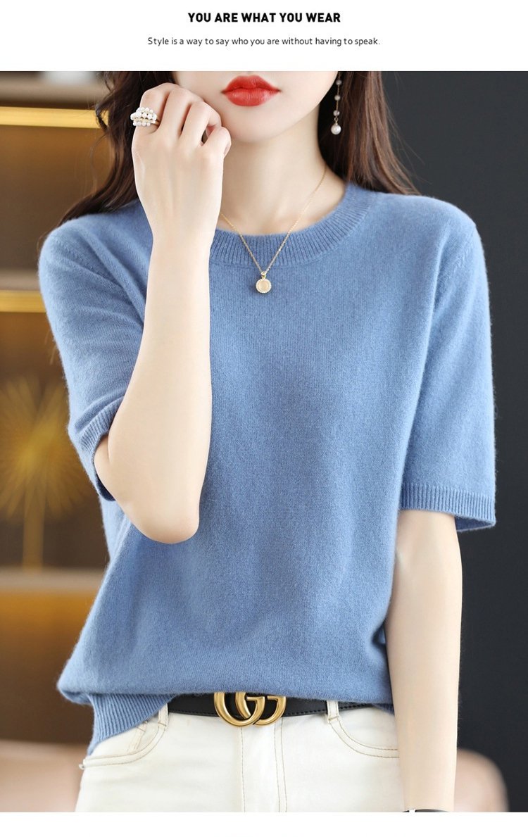 7부 소매 캐시미어 니트