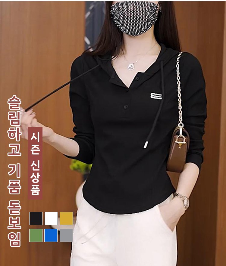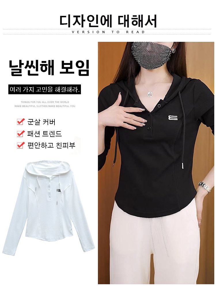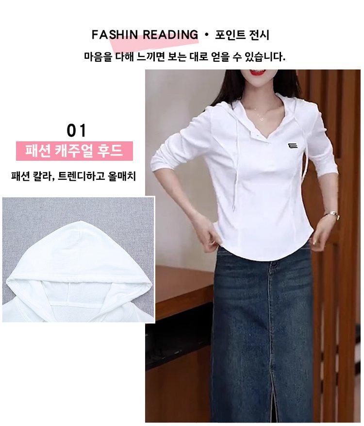 여성용 숏 슬림핏 스트레치 후드 티셔츠